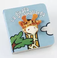 Libro todo cartoné con una divertida marioneta de dedo con forma de jirafa inserta en su interior.