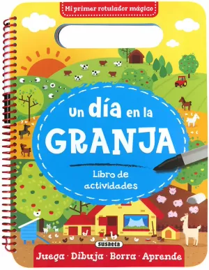 Disfruta de una jornada en la granja con este libro de actividades. Con el rotulador borrable, los niños pueden practicar la escritura de números y letras, resolver pasatiempos y mejorar su habilidad para manejar el rotulador. ¡Perfecto para aprender jugando!